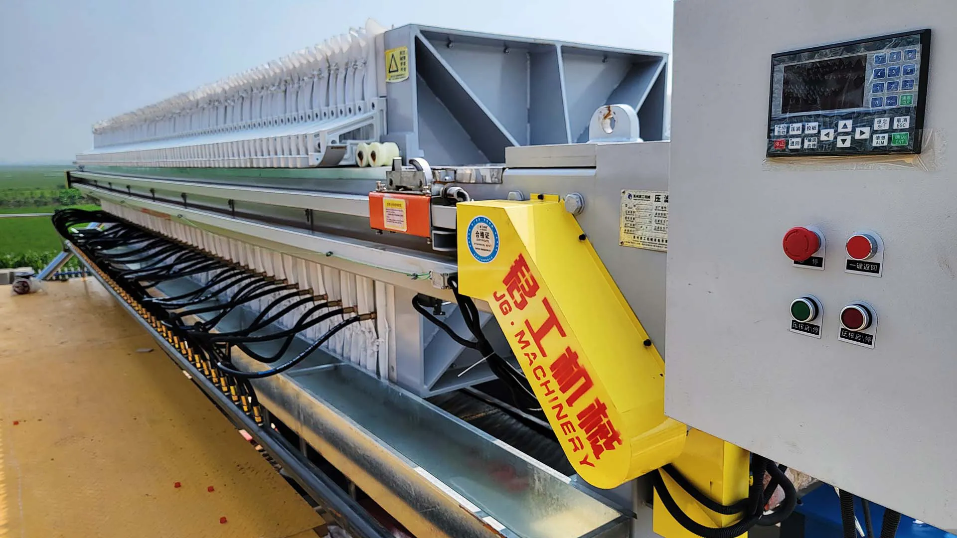 两台君工机械1250型隔膜压滤机(250㎡)矗立辽宁某大型养殖场,灰白机身与黄色“君工机械”标识在阳光下熠熠生辉。田间变车间,废水处理无需再建厂房!